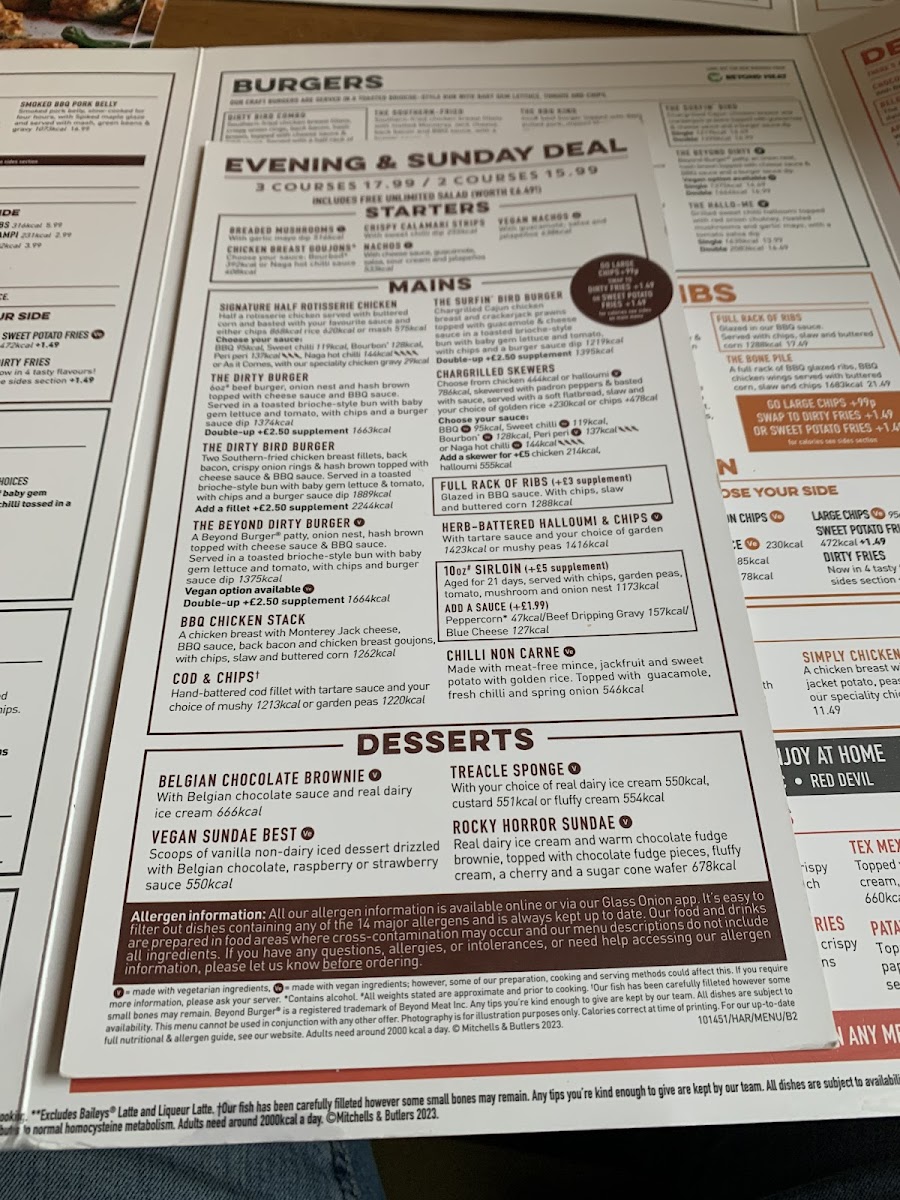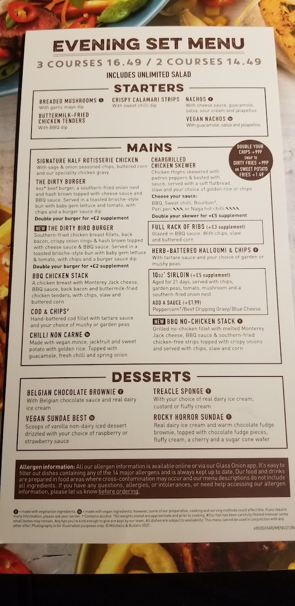Introducing the Menu at Harvester Ghillies Lair Aberdeen
